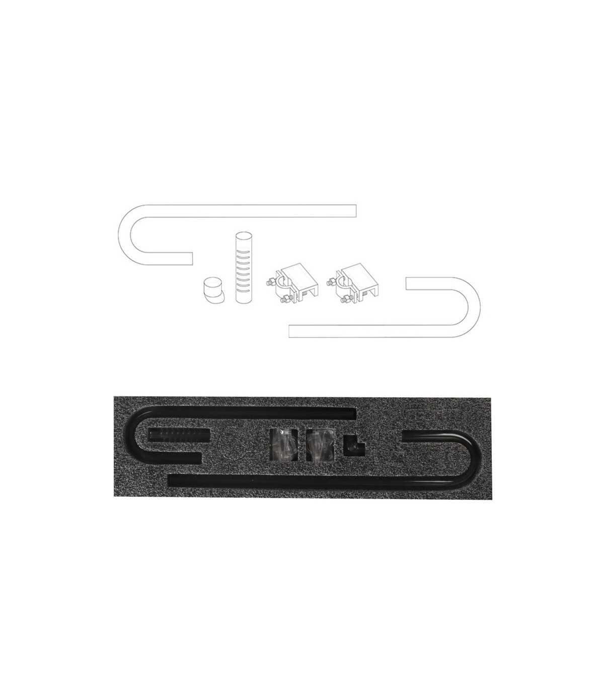 El conjunto incluye dos piezas. Al igual que el resto de los elementos, completamente transparente y resistente. Proporciona un agarre fuerte y seguro para los tubos. Se adapta a vidrios de 14 a 4 mm de grosor.