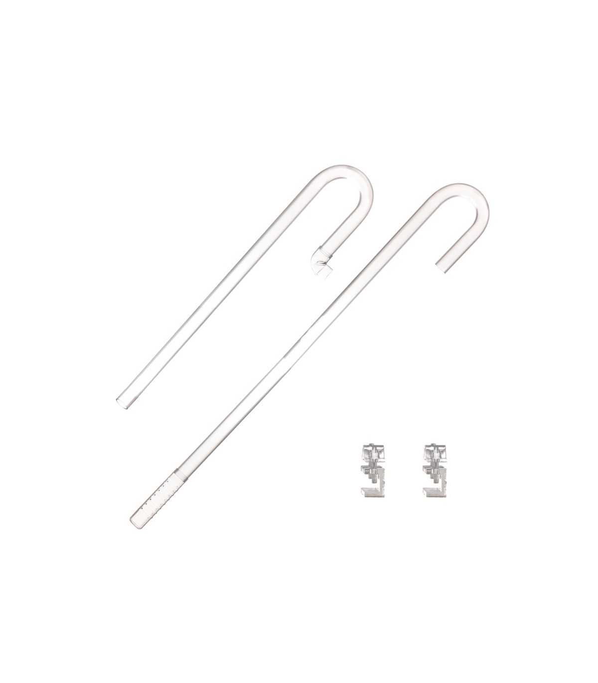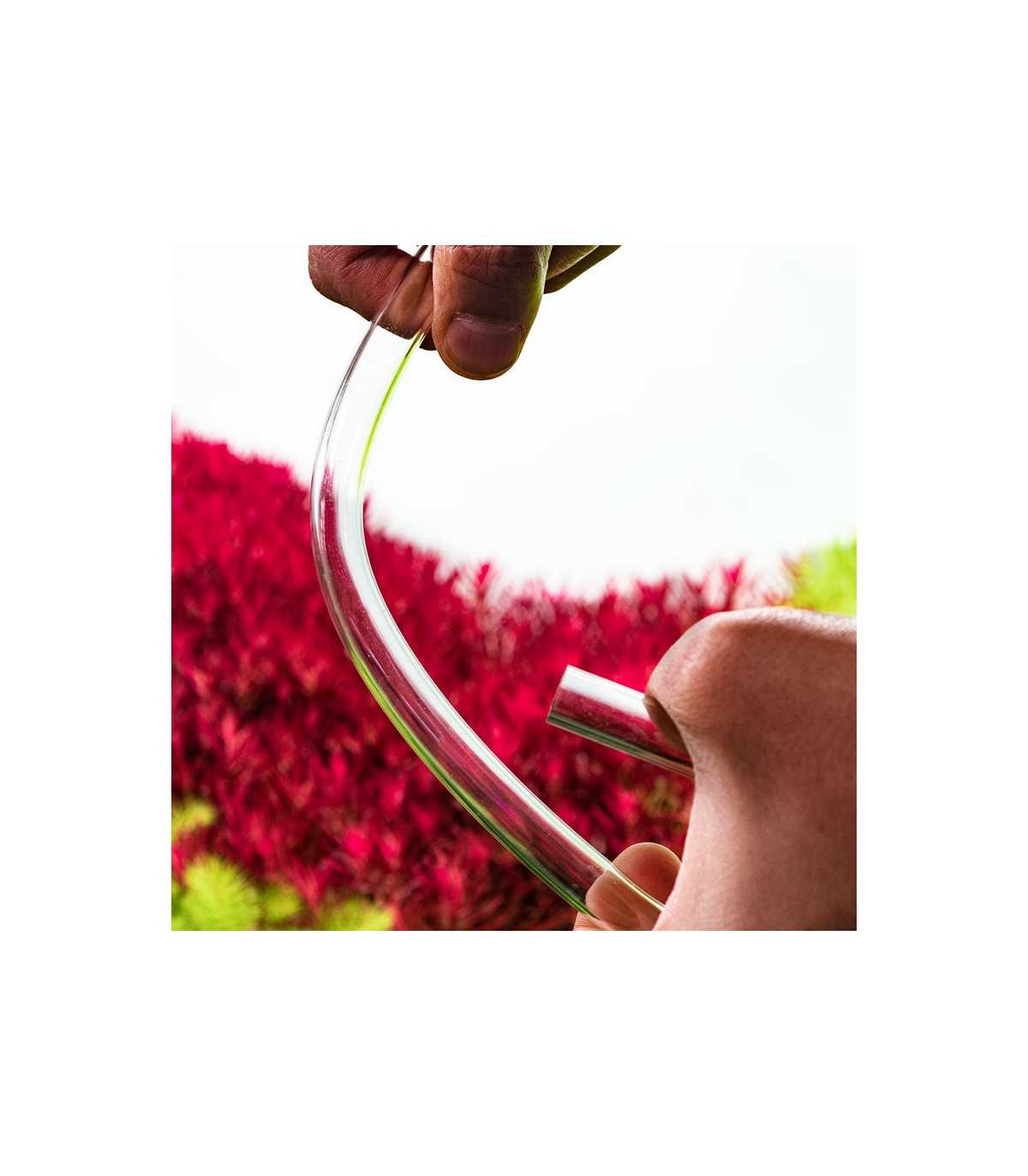 Conjunto de entrada y salida para mangueras de acuario de 12/16 mm de diámetro. Está fabricado con material flexible, lo que es la razón principal que lo determina de manera inequívoca: es la mejor entrada y salida en el mercado. Como es completamente transparente, es flexible, no se rompe ni se quiebra, puedes cortarlo a la medida que desees, es estético y se adapta a mangueras estándar.