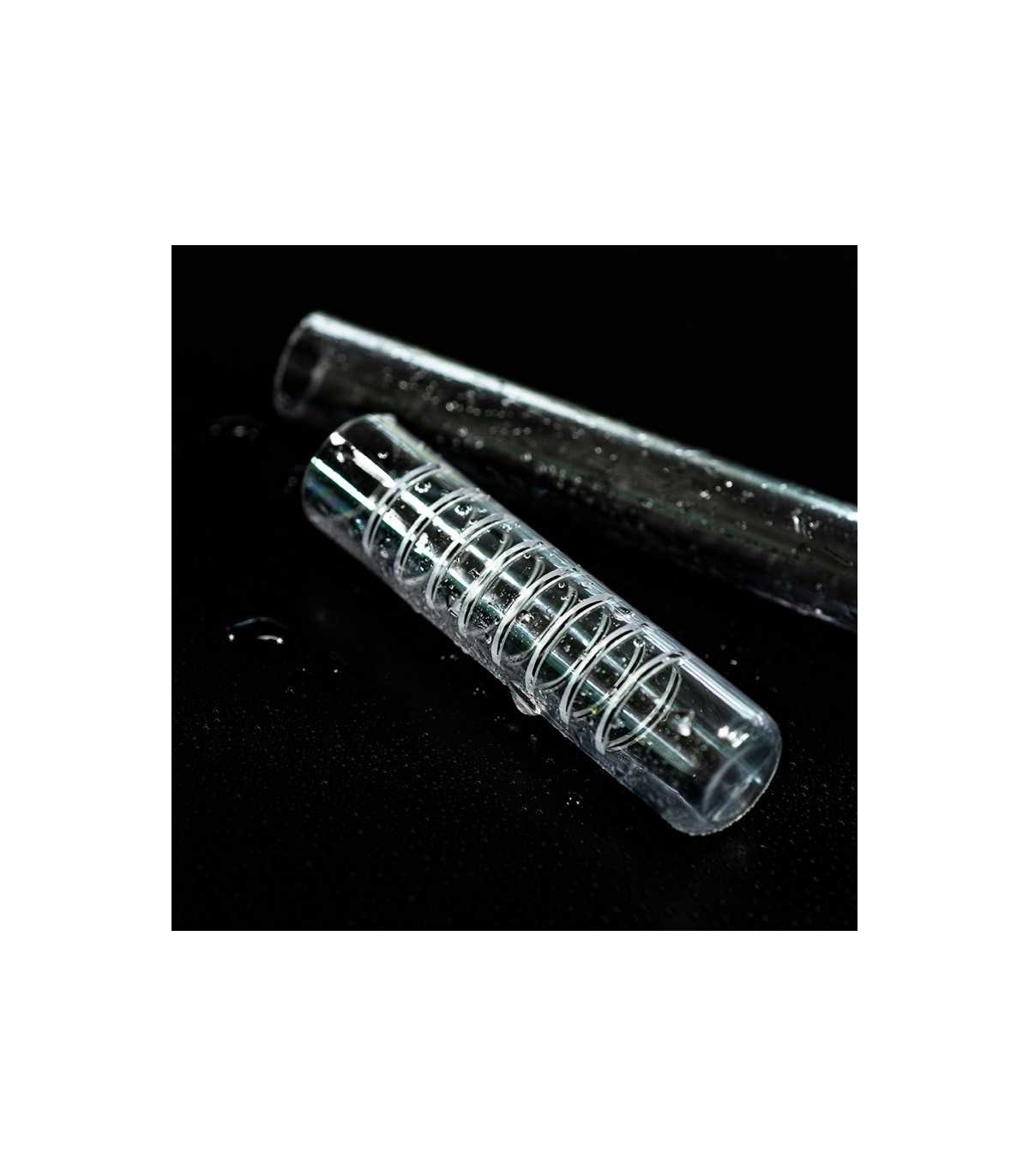 La entrada y salida están hechas de material PETG. Es un plástico duro que se caracteriza por su excepcional resistencia, elasticidad y es completamente transparente.