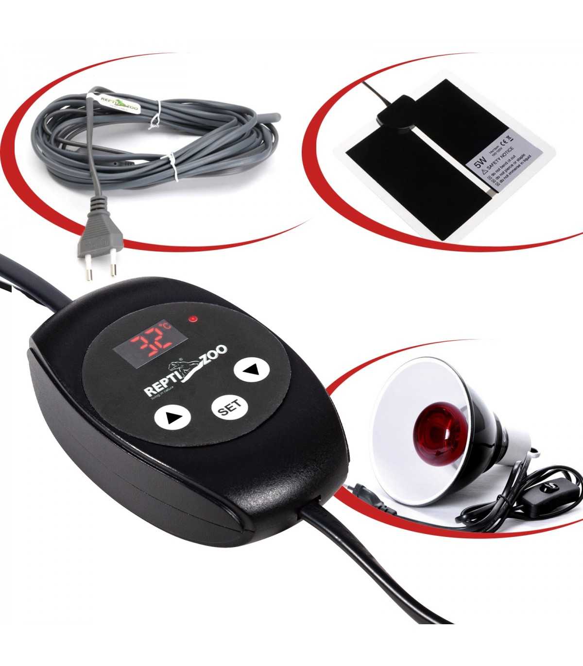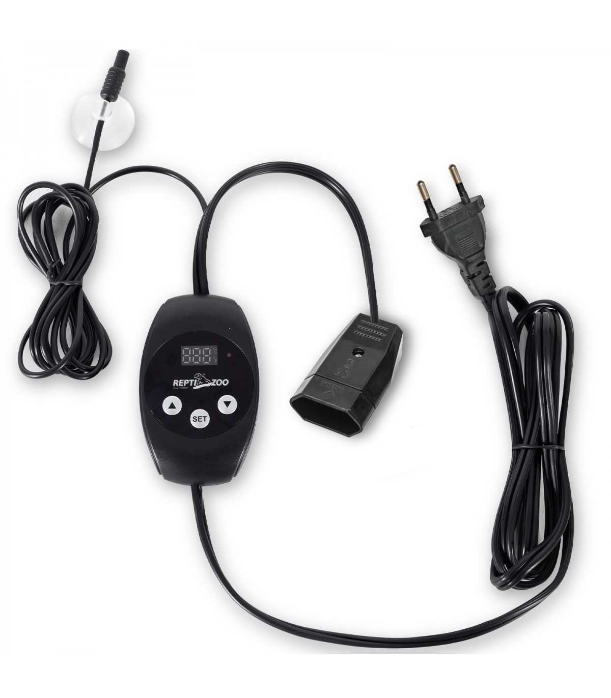 Termostato para terrario o acuario. Mantiene constantemente la temperatura seleccionada. Perfecto para cualquier terrario tropical o desértico. Gracias a la sonda de temperatura exterior resistente al agua, también puede funcionar en un acuario.