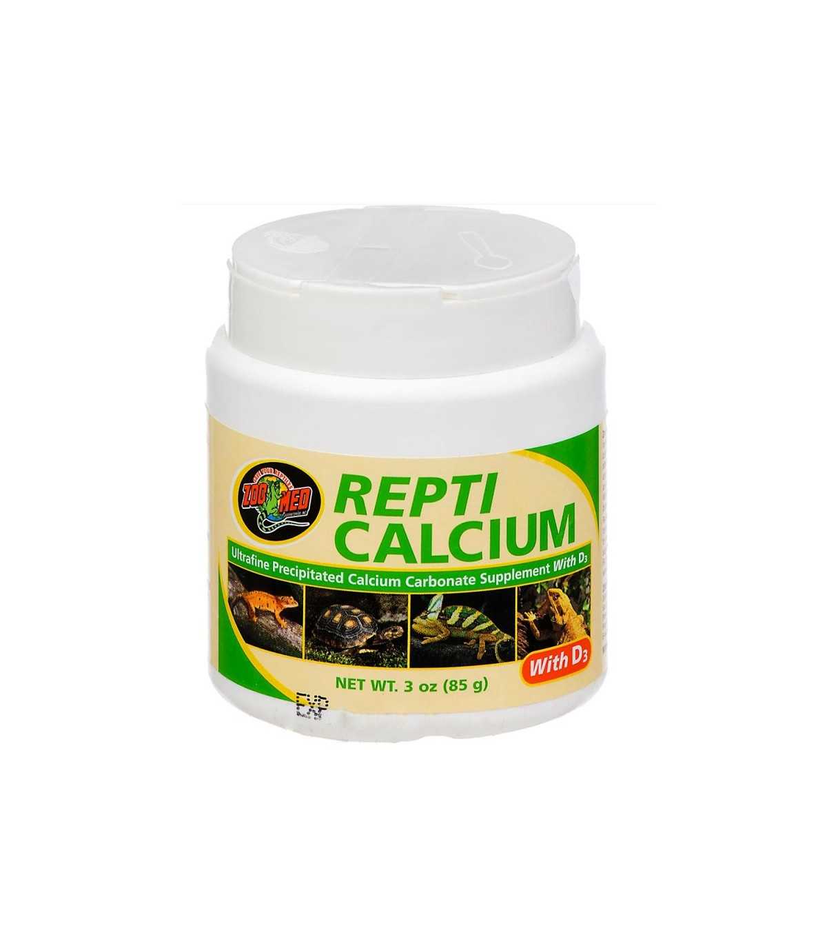 ZOO MED Repti Calcium con vitamina D3 es un complemento alimenticio esencial para reptiles y anfibios en forma de carbonato de calcio súper puro sin fósforo.